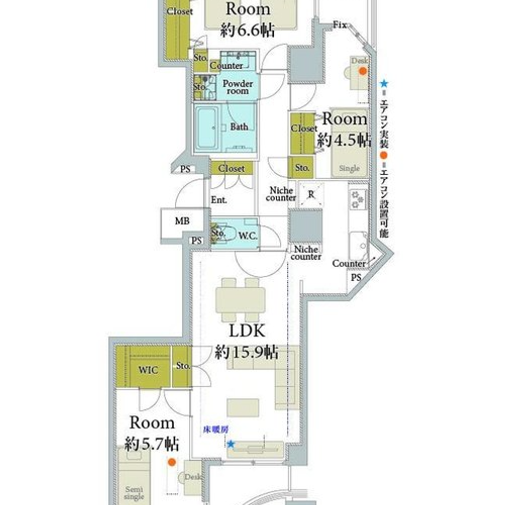 Kitchen, Hot Water, Lighting Fixtures, Flooring, Cooking Stove, Small Balcony, Aircon, Toilet, Washlet, Separate Bath Toilet, Shower, Independent Wash Basin