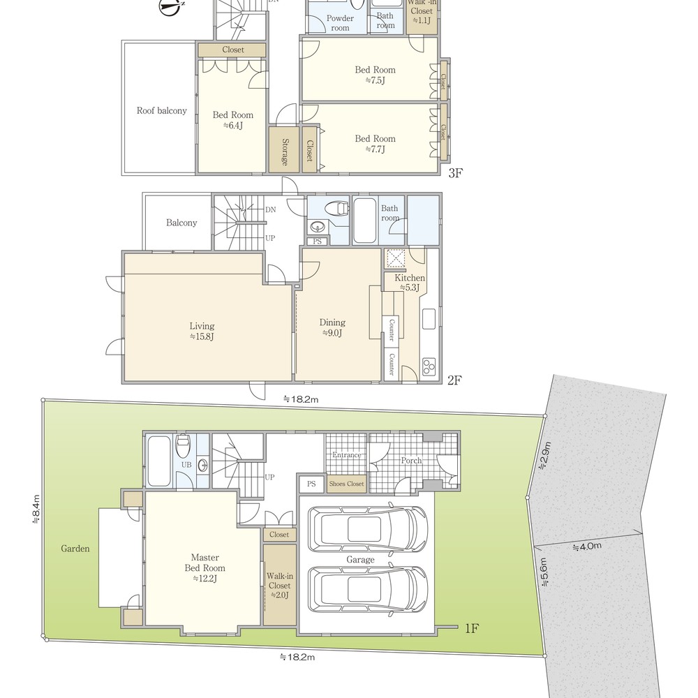Kitchen, Hot Water, Carpeting, Flooring, Oven, Cooking Stove, Large Garden, Aircon, Video Intercom, Toilet, Washlet, Separate Bath Toilet, Shower, Independent Wash Basin, Bathroom Dryer, Water Purifier, Disposer, Parking