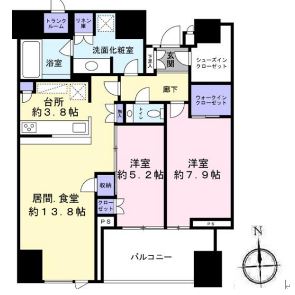 Situated on the 11th floor, this south-facing unit boasts ample sunlight and breathtaking views. The balcony offers an unobstructed skyline, featuring a stunning view of the Tokyo Skytree.
